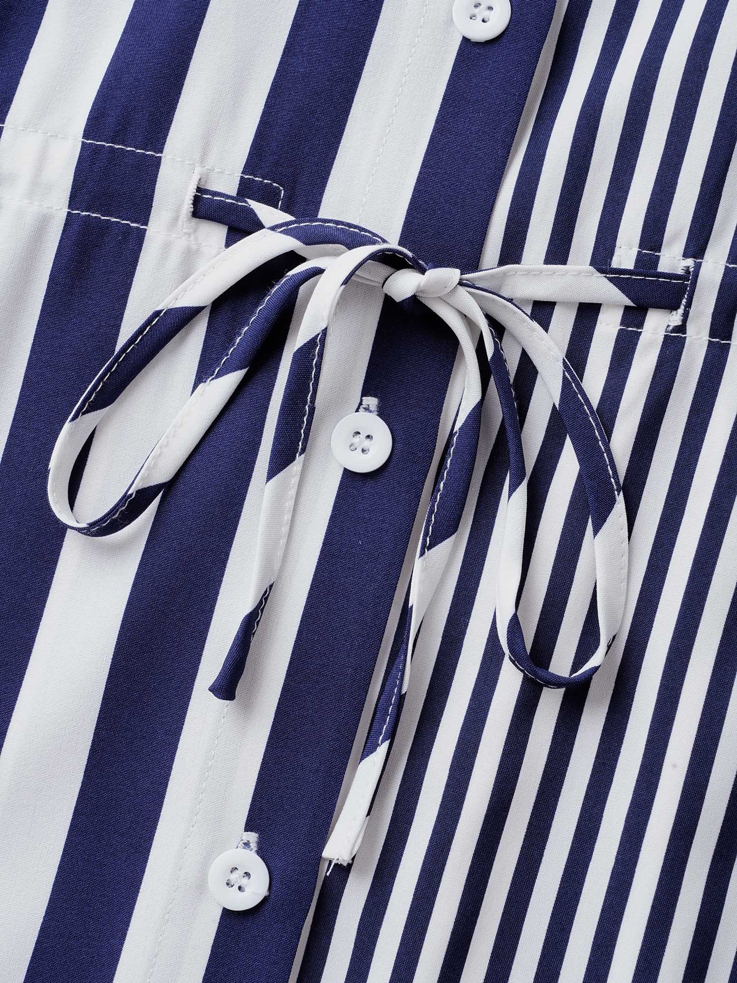 • Striped Patchwork Drawstring Dolman Sleeve Dress