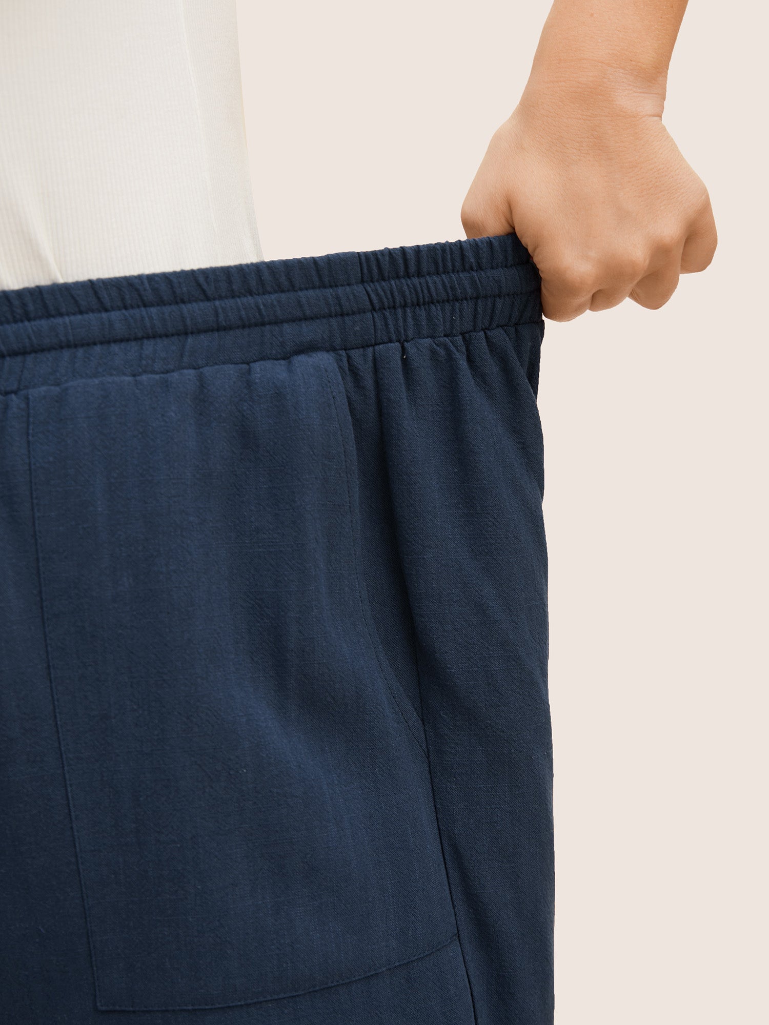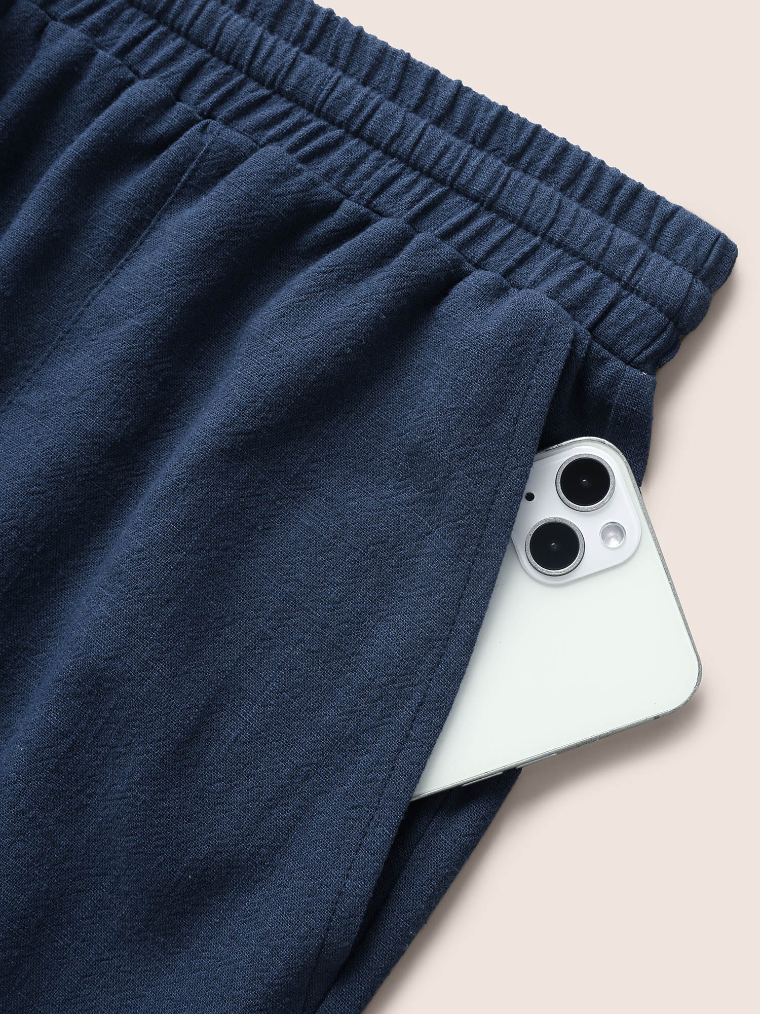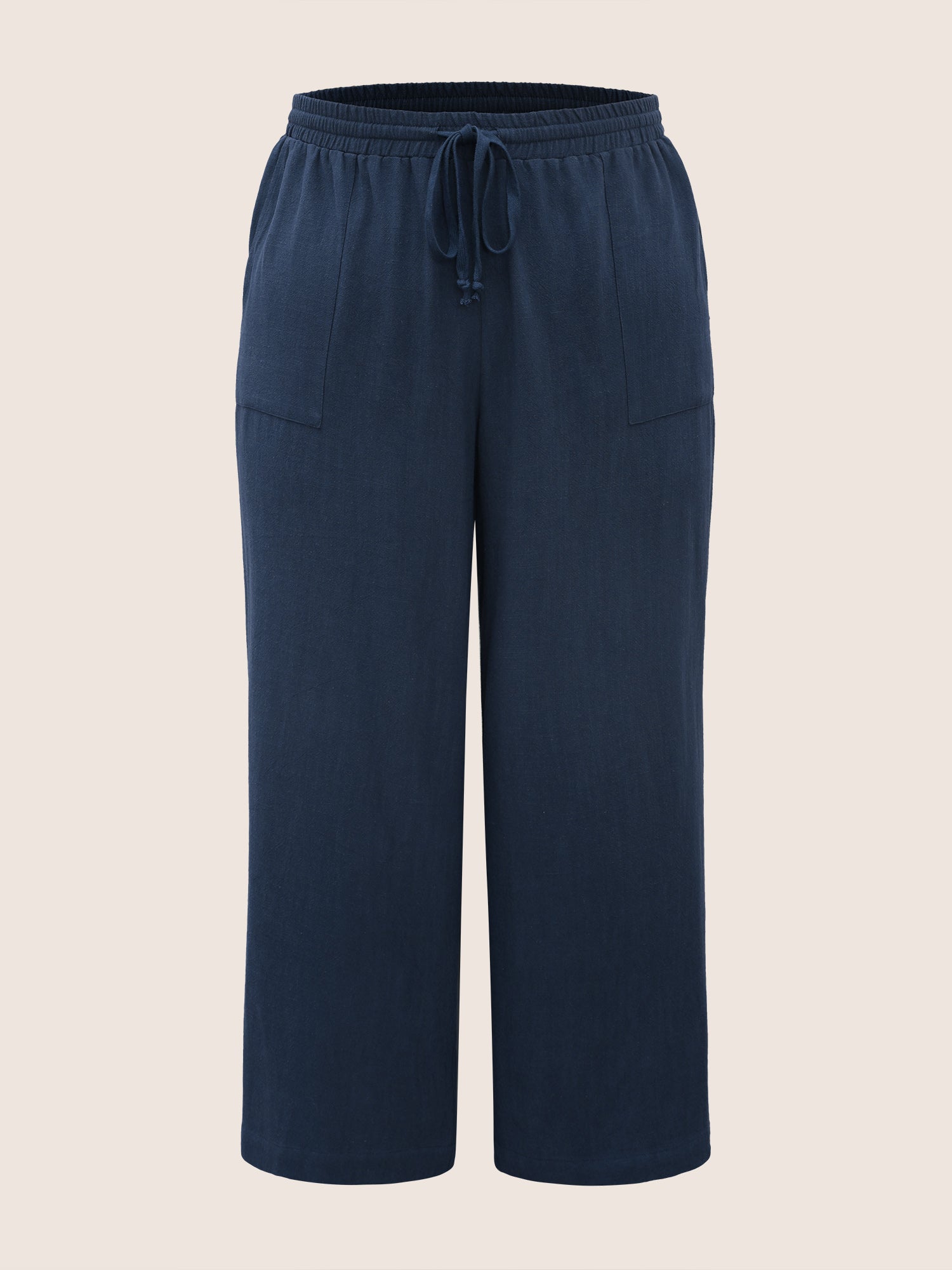 • Cotton Linen Drawstring Split Hem Wide Leg Pants