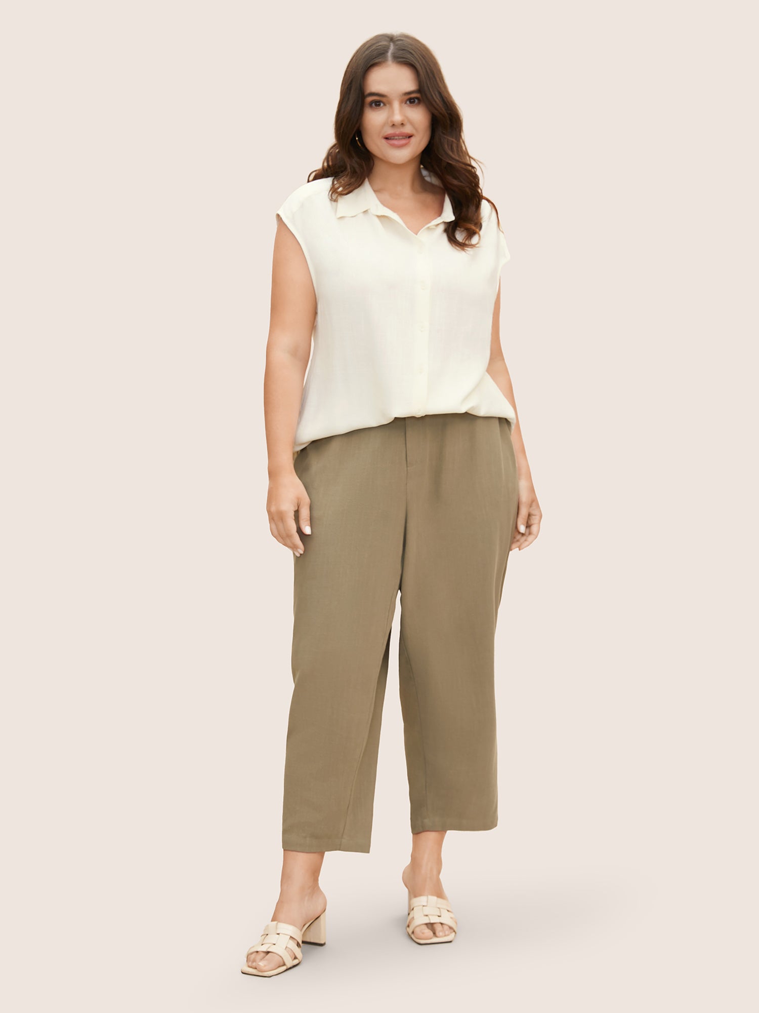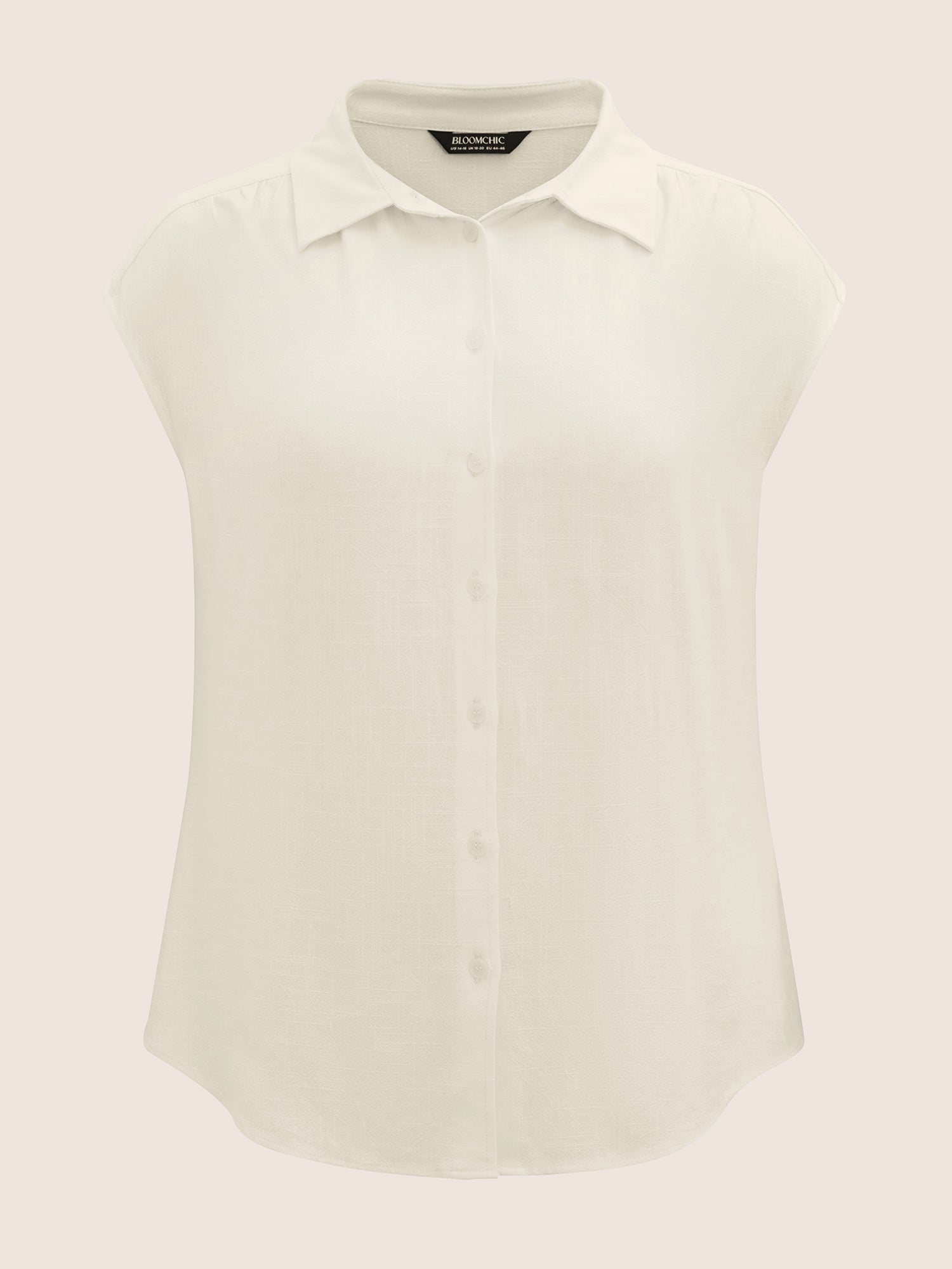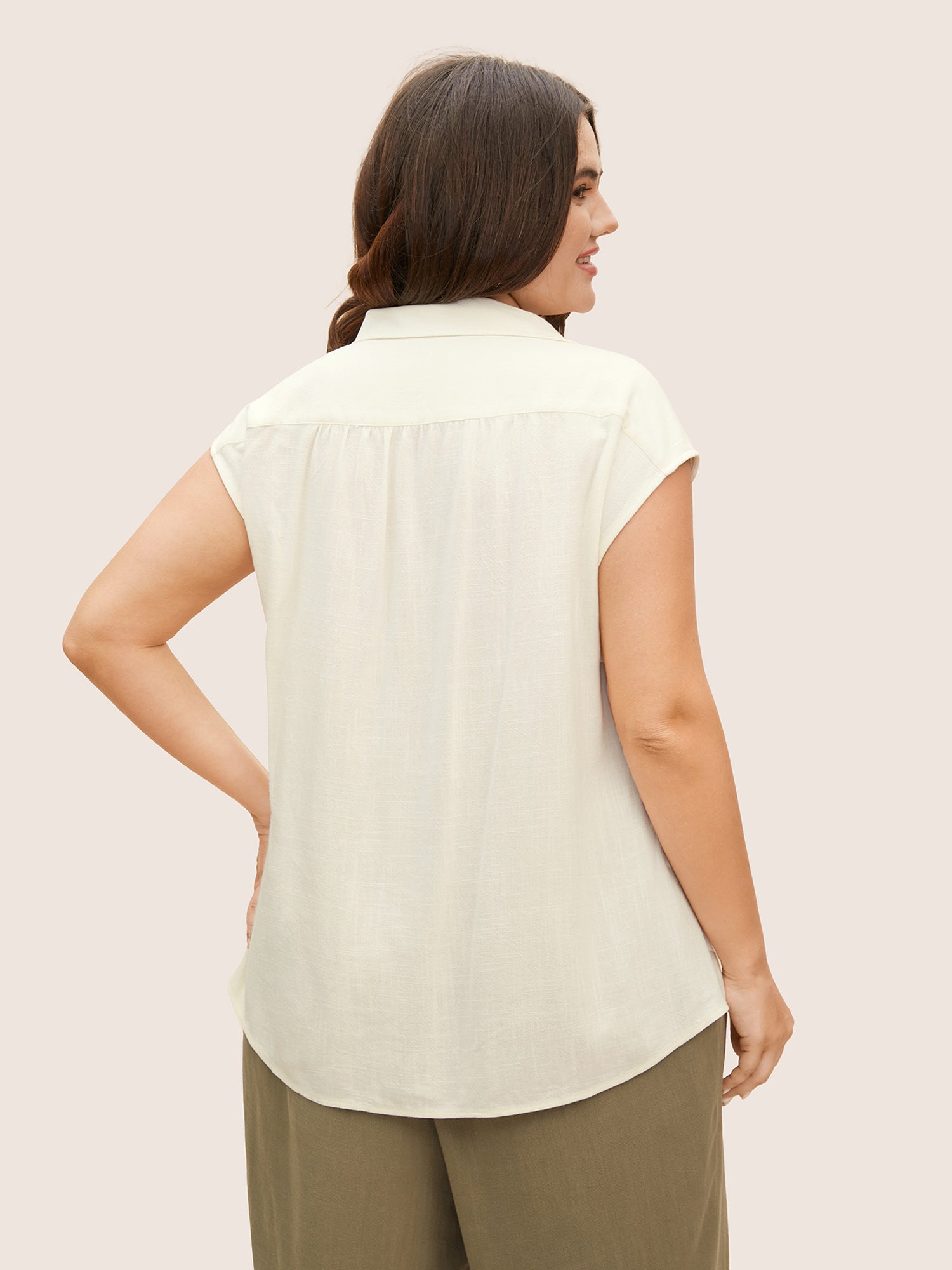 Cotton Linen Shirt Collar Arc Hem Blouse