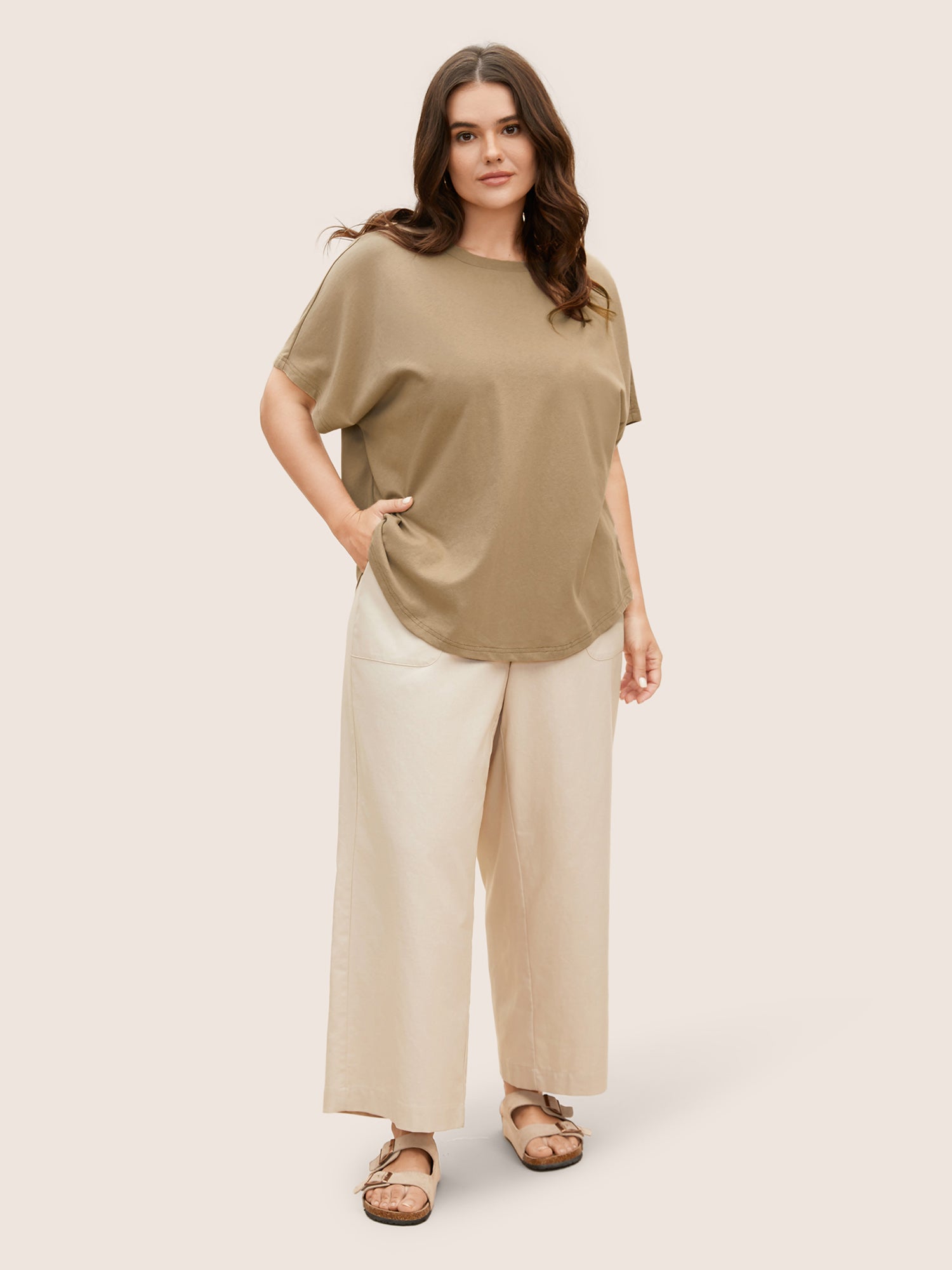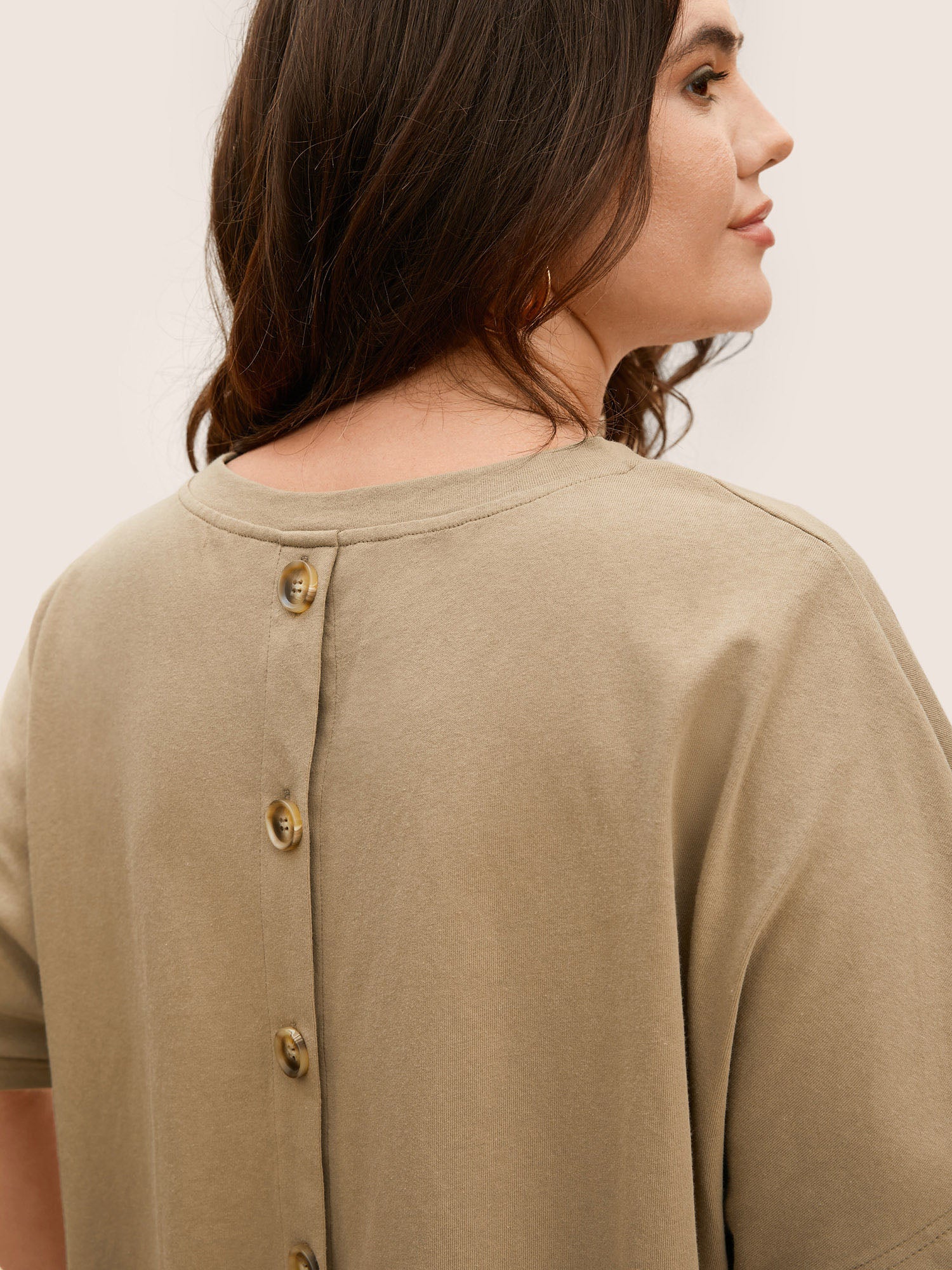 Cotton Back Button Detail Dolman Sleeve T-shirt