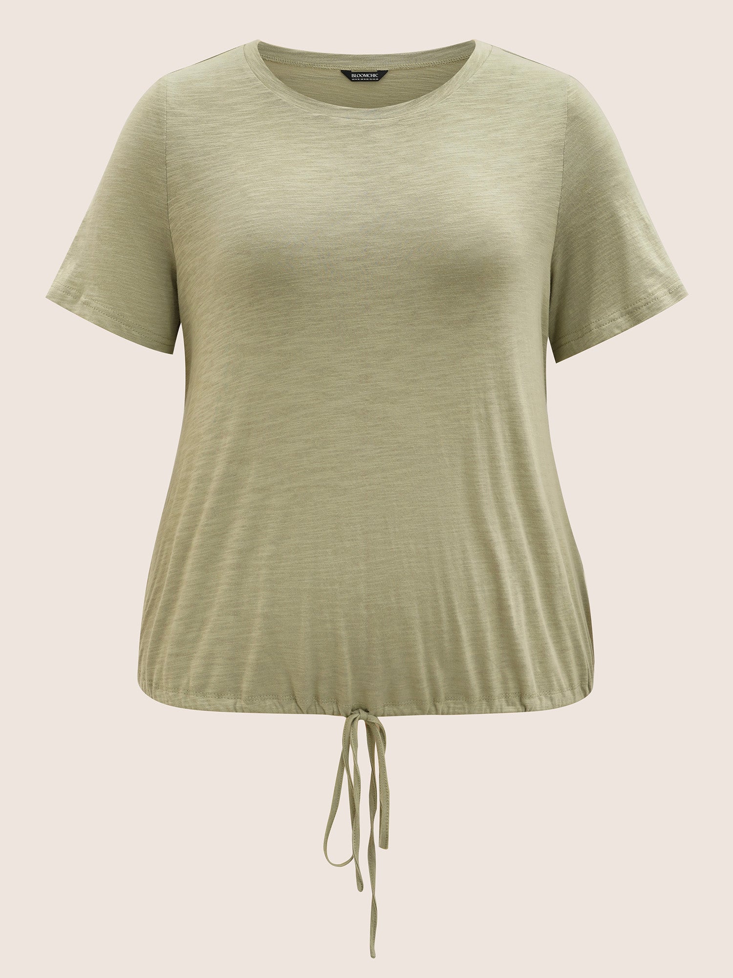 Cotton Round Neck Drawstring Medium Stretch T-shirt