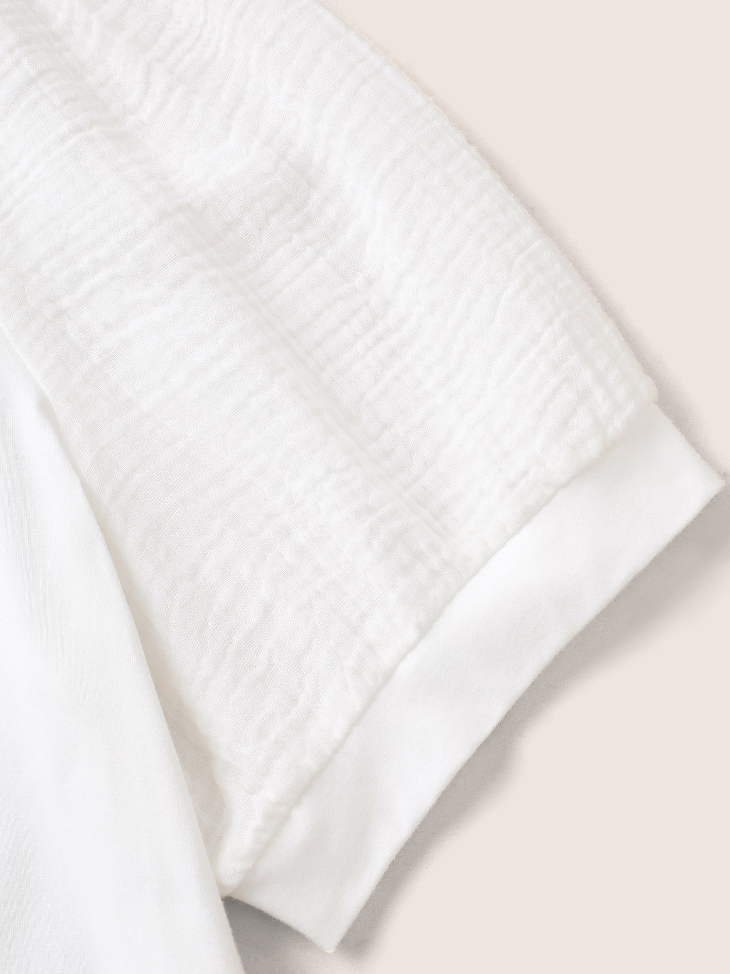Plain Textured Patchwork Lantern Sleeve T-shirt